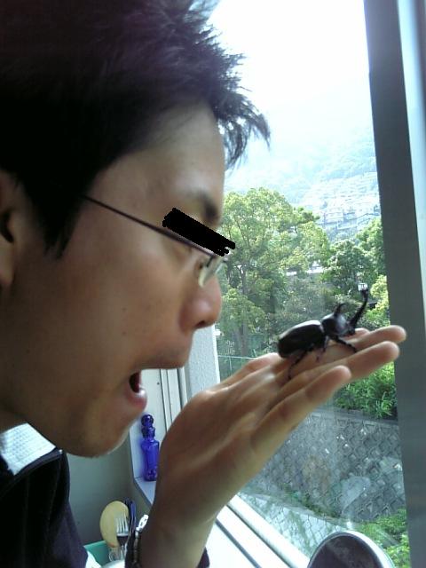 昨日後輩が夏の王者、カブトムシを見つけてきましたー!