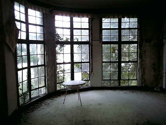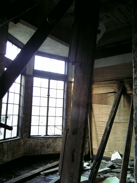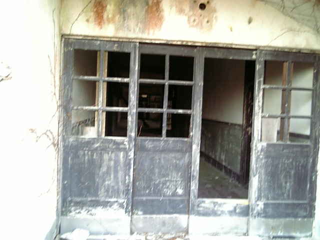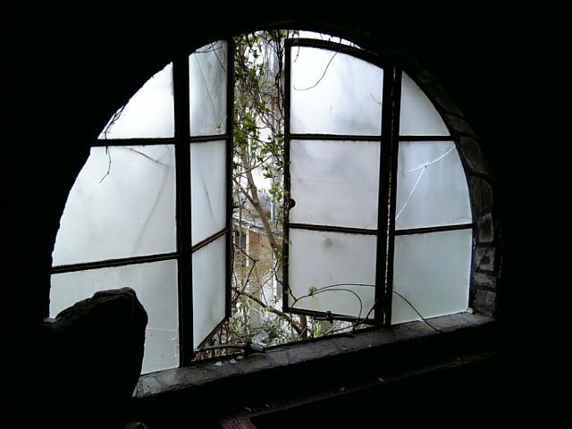 ぼろぼろに壊れた窓枠。