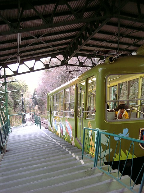 ケーブルカーで。